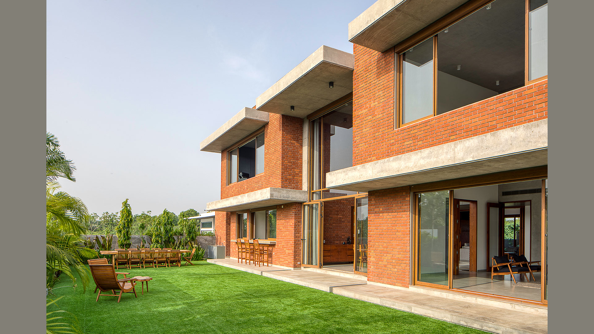 The brick connection is a house designed for a very simple, well-travelled couple wishing to settle a little away from the chaos of the city. Grounded close to nature, this couple wanted a vastu compliant house, which reflects this closeness to roots as well as their elegant personality. Very clear with their thoughts and requirements, they wanted their home to be coherent in terms of space utilization and energy efficiency. Located in the outskirts of Vadodara on a 7400 sqft plot, this house holds true to its promises.